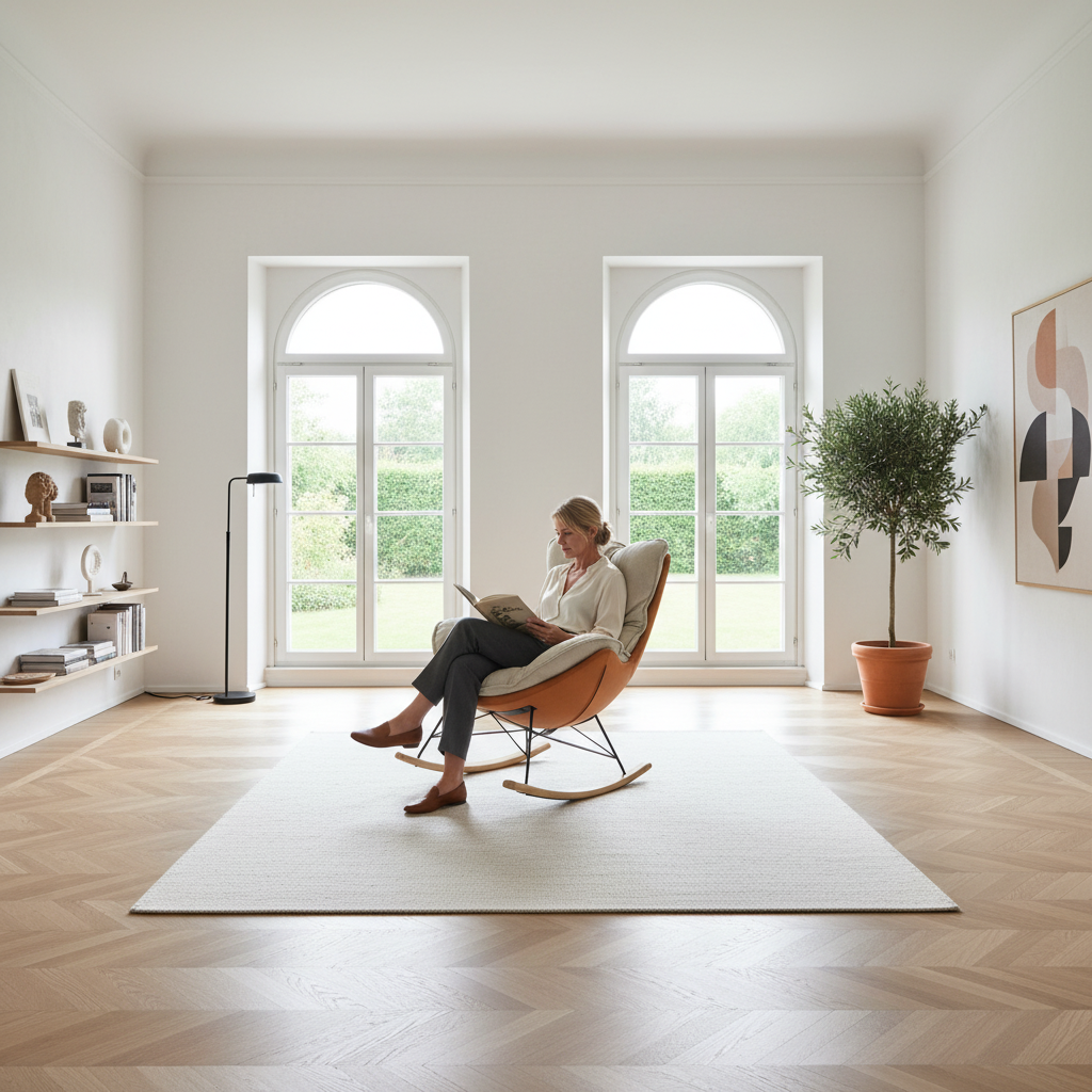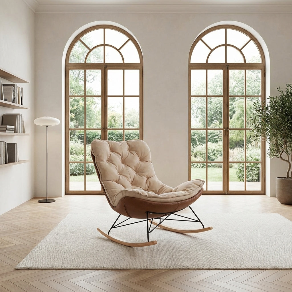 This rocking chair is perfect for my living room. It's stylish, comfortable, and the rocking feature is soothing. The chair looks great and is a great addition to my home. Highly recommend!