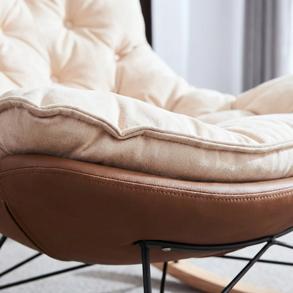 This Rocking Chair embodies elegance, sophistication, and comfort. The features a tasteful, button-tufted wingback with foam padding. This fashionable chair will look right at home in your living room, nursery, or any shared space, as the subtle design makes it easy to coordinate with your decor.
