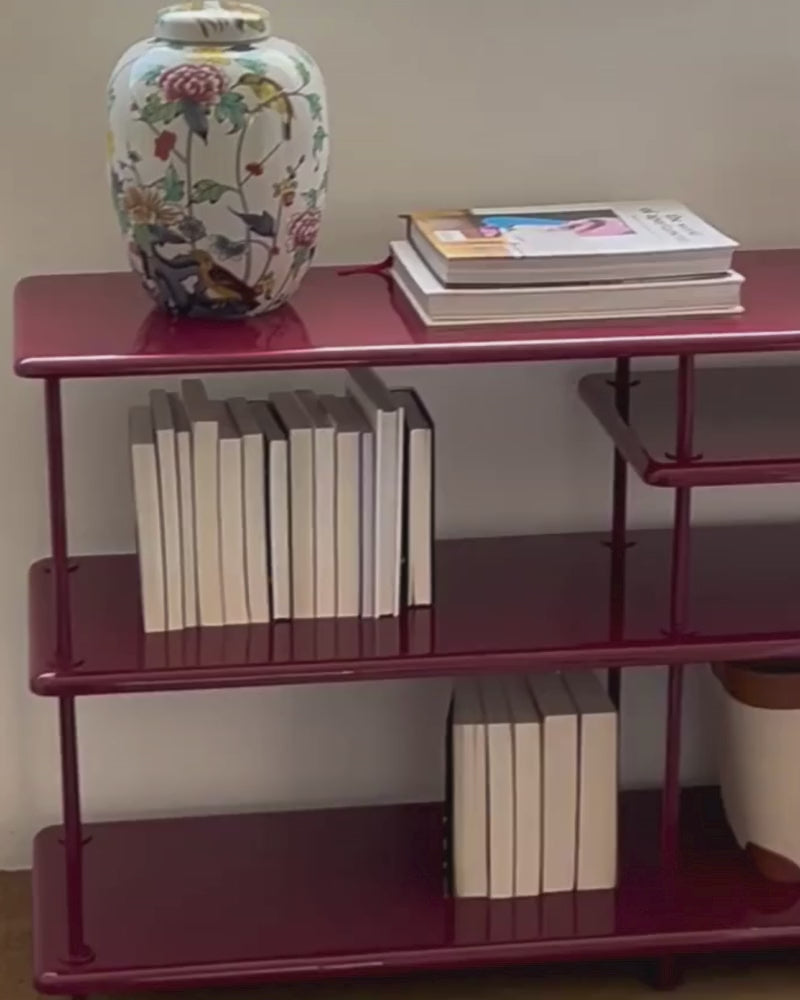 The Anylia Modern Side Cabinet features a minimalist Italian design with functional open shelves for display and storage. Its durable build and sleek Rouge Canyon Red finish add elegance and practicality to any modern living space.