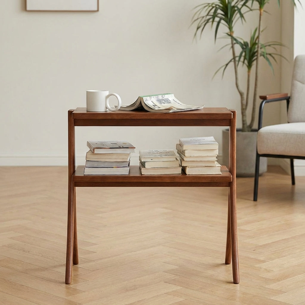 The Fadzai X-Leg Solid Wood Side Table blends modern design with practical storage. Made from durable solid wood, it features two levels for extra space and showcases handcrafted details with retro colors. Ideal as a side table or entryway shelf, it adds both style and function to any room.