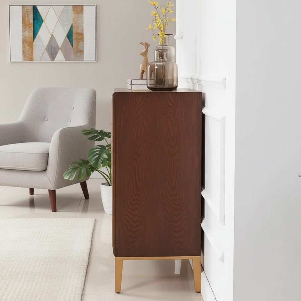 When it comes to rounding out your dining ensemble, nothing is quite as versatile as a sideboard: not only do they store your dining linens and plates, but they're also responsible for staging displays and appetizers! Besides, its role in your home depends on you. For example, if you need it to be a cabinet for storing shoes, then it is. The design of this cabinet is diversified, and the purpose of use can be varied. This sideboard is a great option for storage in a modern aesthetic: featuring the special gold outline painting craft and skin-friendly paint. Plus, due to the considerable design of storage, It's perfect for clearing away dinnertime clutter with a few easy steps. Also, its interior shelves can be moved as per your request flexibly, which is much different from the old-styled sideboard. With it, you not only have a piece of furniture, but an exquisite lifestyle!
