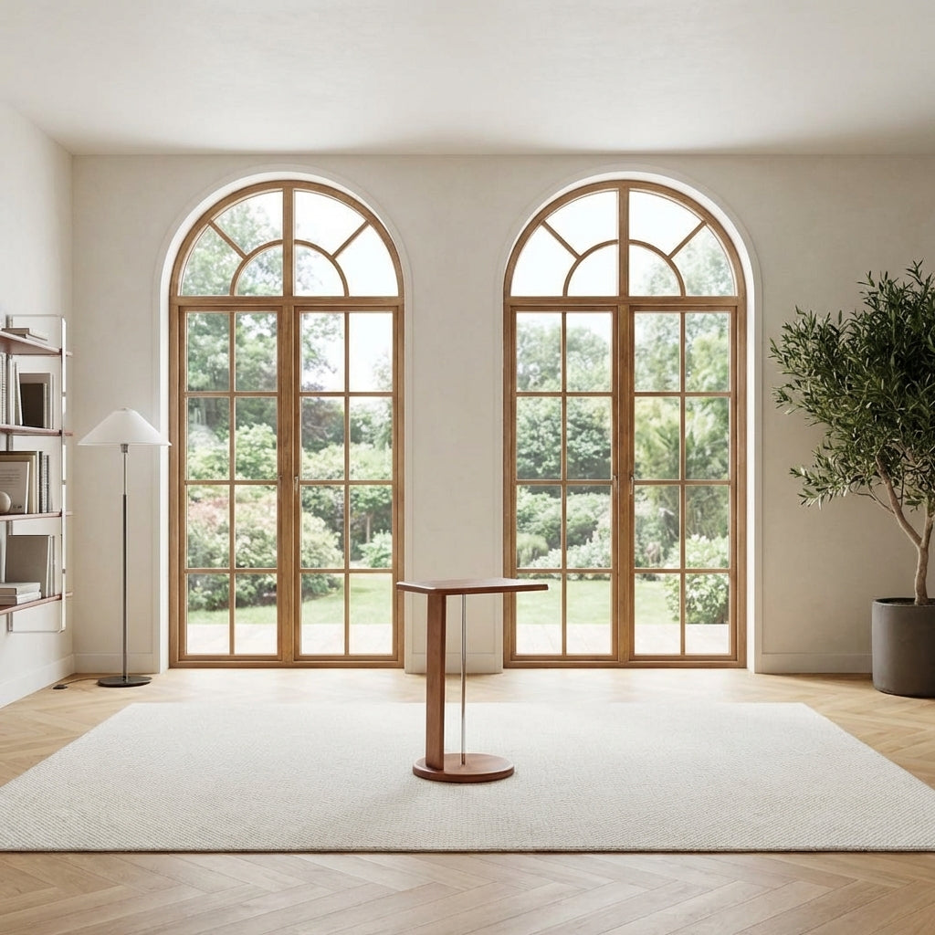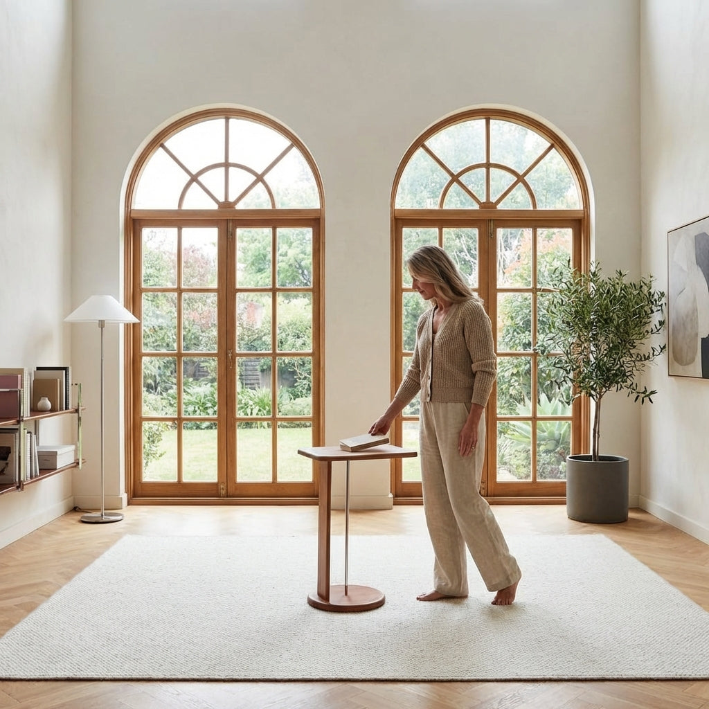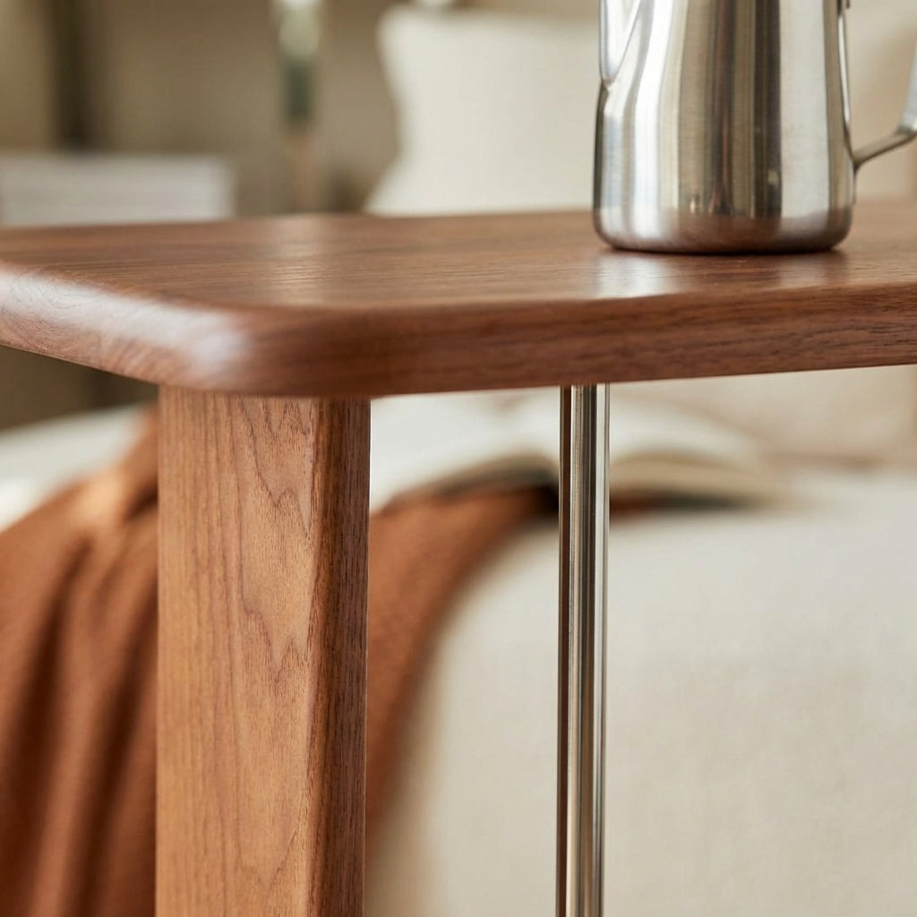 The Harmony Wooden Harp End Table combines vintage style with modern design. Made from solid white wax wood with an eco-friendly finish, it features a stainless steel rod for holding books or magazines. Standing 60 cm tall with smooth edges, it fits comfortably beside sofas or beds, offering both style and practical use in any room.