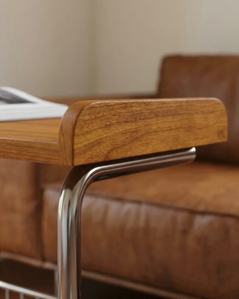 The open storage basket at the bottom provides convenient storage for books, magazines, and other small items, keeping your workspace tidy.