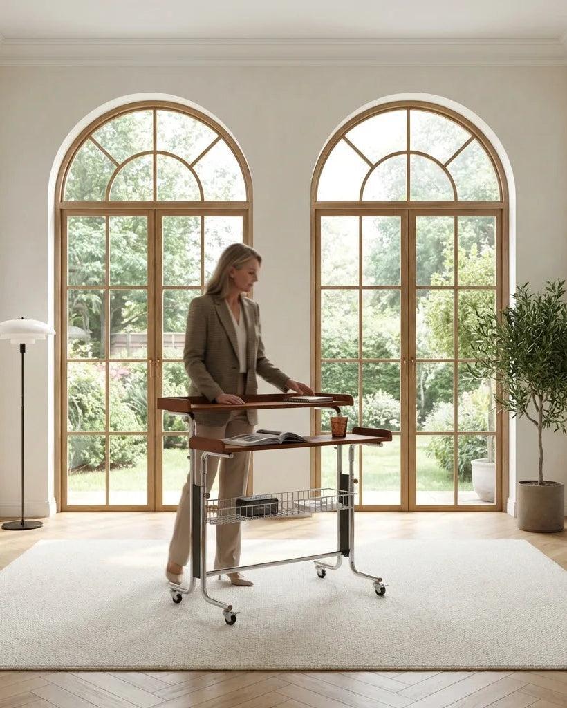 The Milo Height-Adjust Mobile Desk offers adjustable height for comfortable sitting or standing work. Its solid wood top and metal legs provide durability and style. Designed for easy mobility, it fits well in small spaces and supports productivity for all ages.