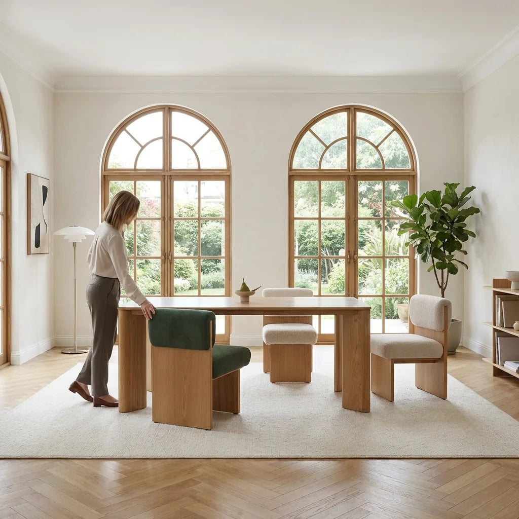 The chair's legs are made from solid oak wood, providing a robust foundation. The design includes full side panels that significantly enhance the chair's stability, making it perfect for everyday use. The solid construction not only ensures durability but also makes cleaning a simple task, adding to the convenience of maintaining your dining space.