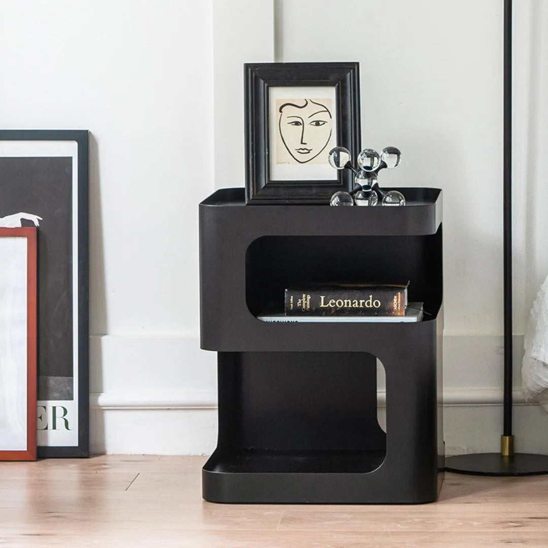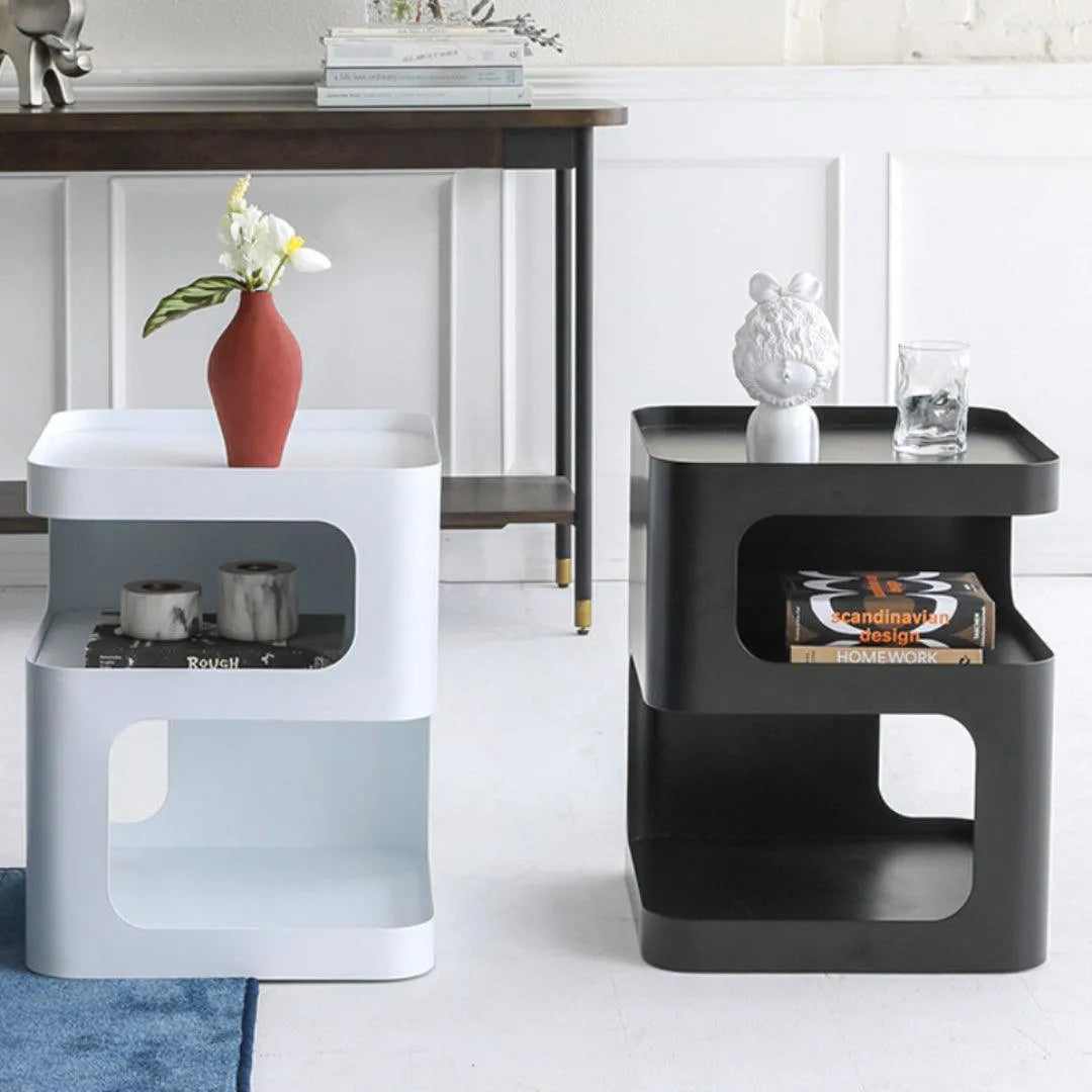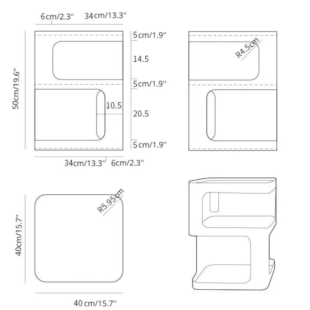 The design is based on a three-dimensional concept, with a solid structure and no legs. Featuring a sculptural shape and a minimally toned finish, this piece will add some modern glamour to your room. It allows you to store coffee mugs, novels, or other small items when not in use.