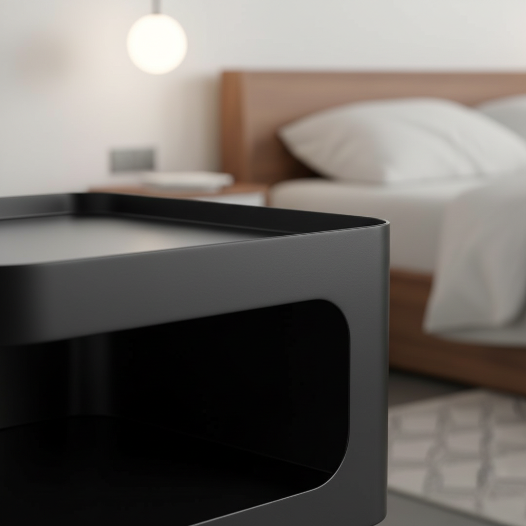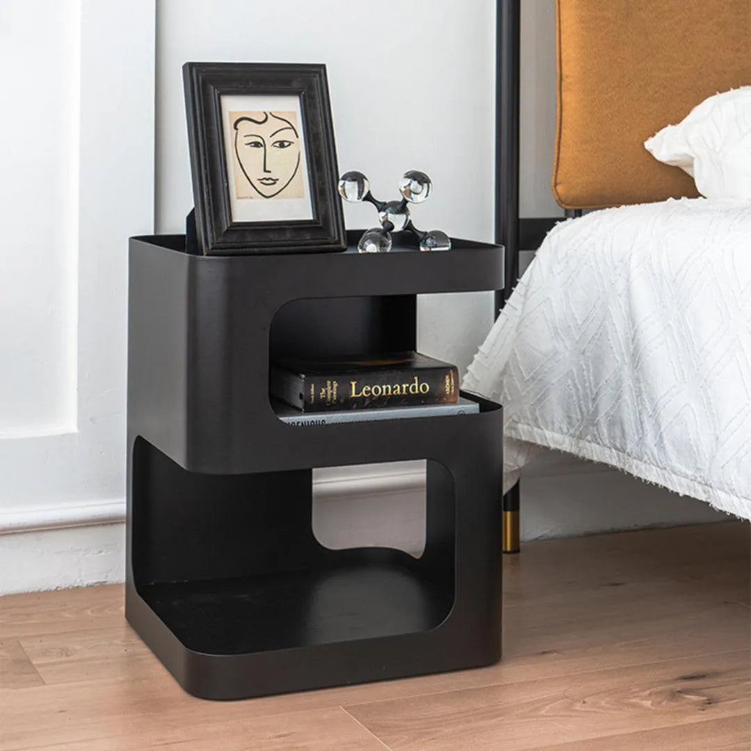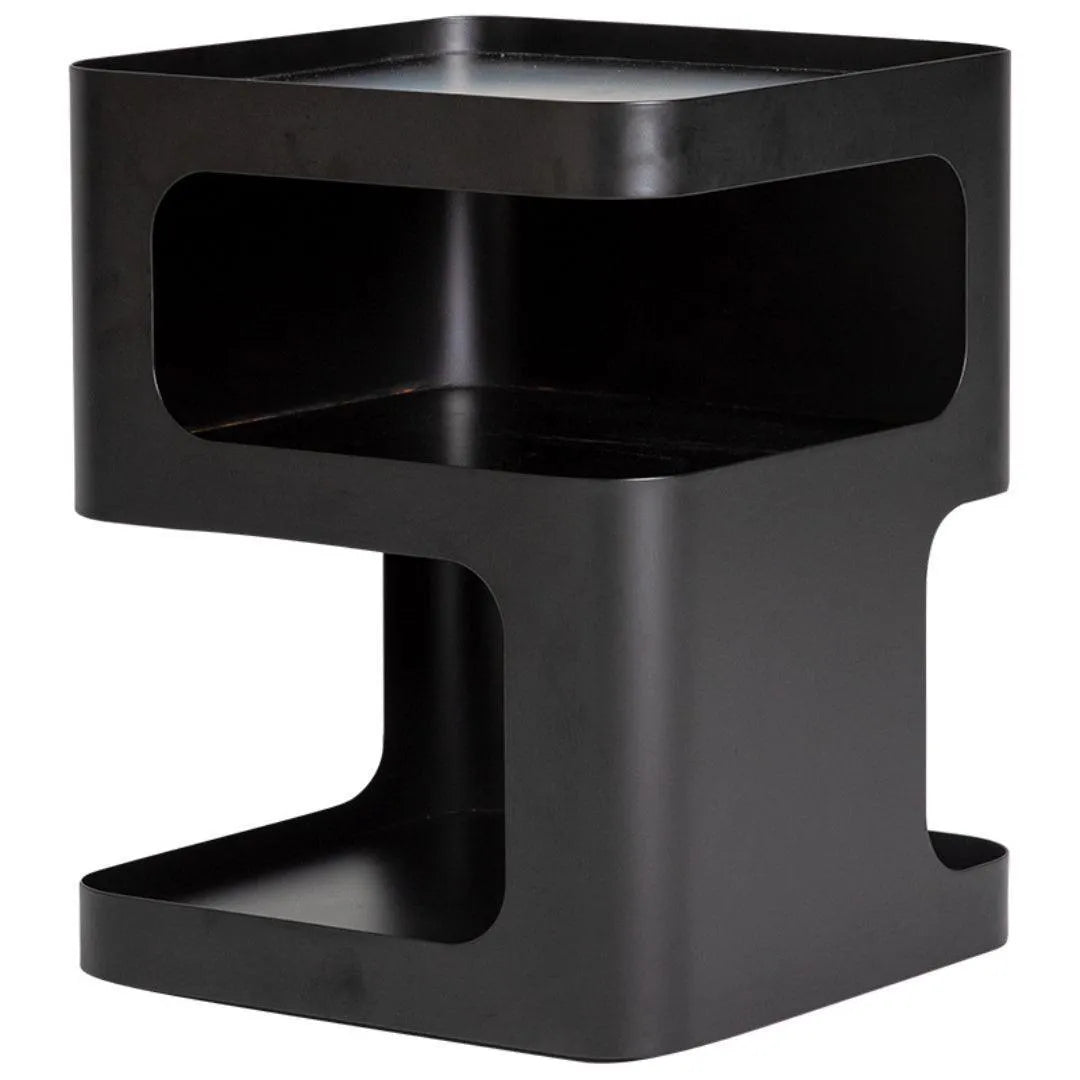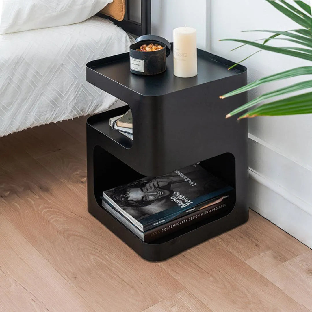 The design is based on a three-dimensional concept, with a solid structure and no legs. Featuring a sculptural shape and a minimally toned finish, this piece will add some modern glamour to your room. It allows you to store coffee mugs, novels, or other small items when not in use.