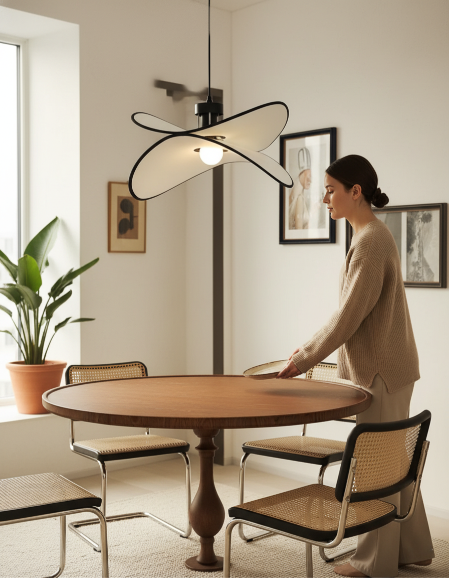 The Avery Fabric Pendant Light combines French-inspired design with practical features. Its fabric shade and iron frame deliver a sophisticated aesthetic in white or black finishes. Select from 50cm or 60cm sizes with adjustable hanging length for precise placement. The tri-color light adjustment lets you shift between brightness levels and warm tones to match your needs throughout the day, while full-spectrum illumination ensures comfortable, natural lighting for any room.
