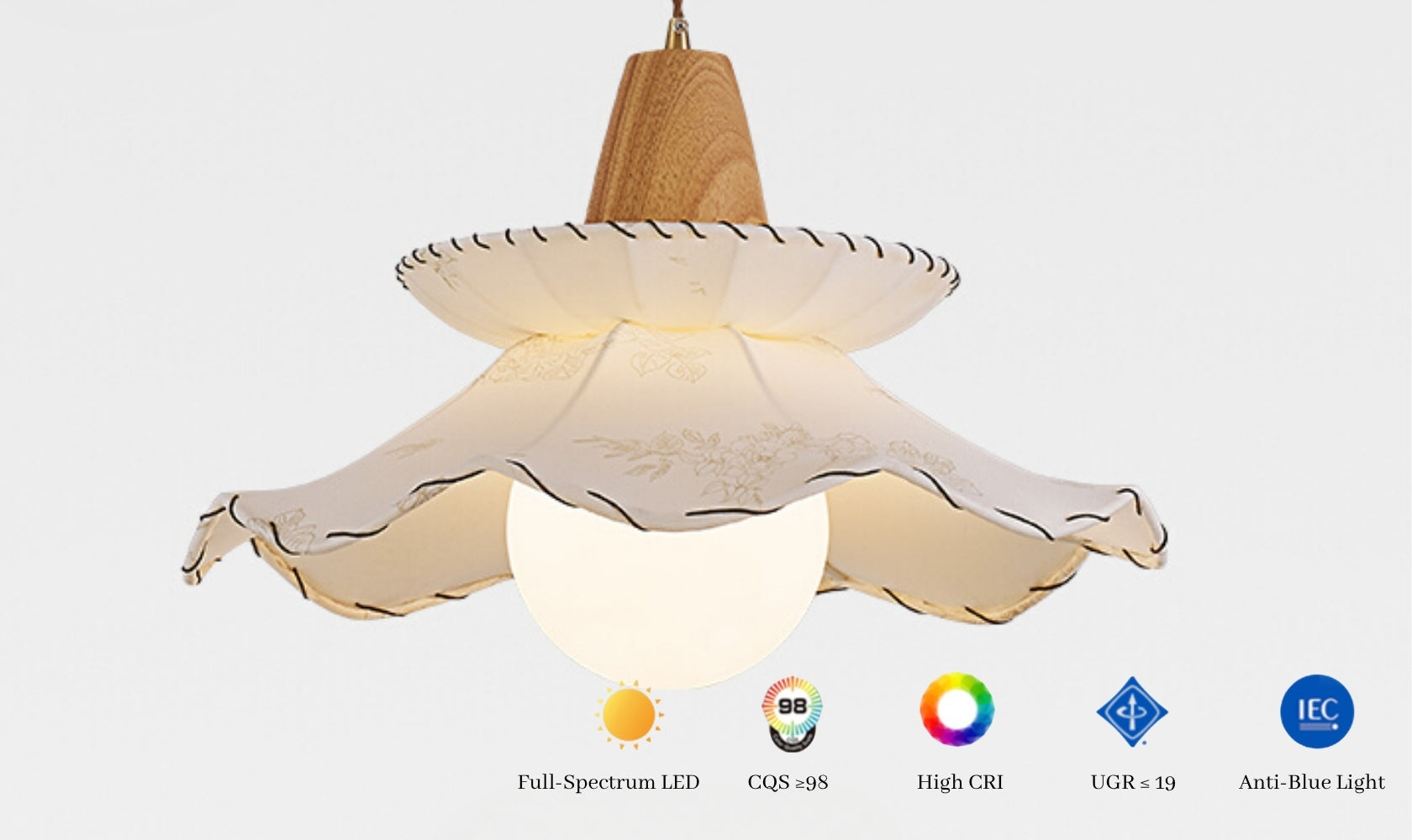 Rouje Vintage Fabric Pendant Light combines French elegance with practical design. Featuring a fabric shade and rubber wood frame, this 45cm diameter fixture delivers warm, full-spectrum LED lighting with exceptional color accuracy. The adjustable 1.6m cord accommodates various ceiling heights, while its color temperature range suits any setting. Universal voltage compatibility and straightforward controls make installation effortless.