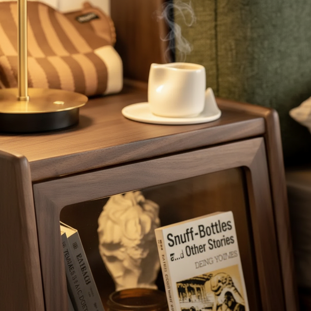 Enhance your bedroom with the Hanley Wood Nightstand, crafted from premium North American black walnut wood. Its sleek design and spacious drawer provide ample storage while adding a touch of Nordic elegance to your space. Versatile for use as a bedside table or side table, this nightstand complements a variety of decor styles for a warm and sophisticated vibe.