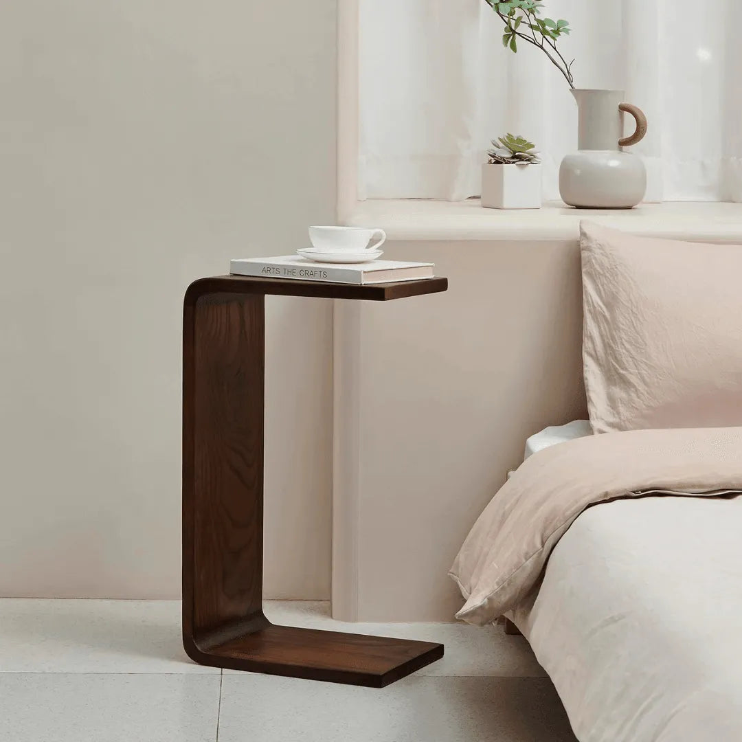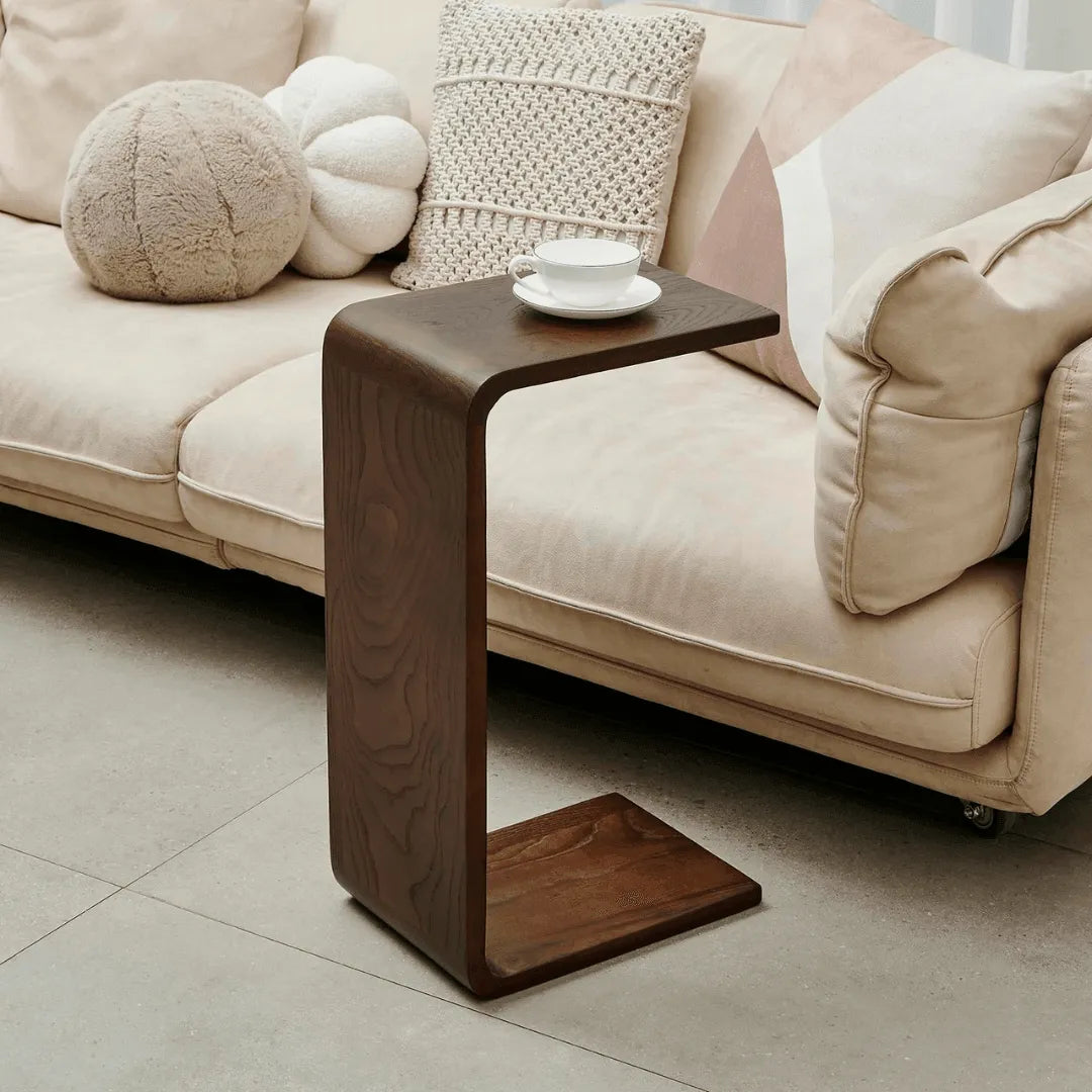 This C-shaped end table brings storage, style, and functionality to your seating group. Whether using it as the perfect perch for your morning mug of coffee or as the universal remote control hub, end tables are a staple in everyone's home. The tabletop offers plenty of space for sitting room essentials, and it fits easily into narrow nooks and cramped corners. The C-shape allows the table to sit flush with a chair or couch, you can nestle it next to you with your favorite snack, drink, or vase. This piece sports clean lines and works well with any room decor.