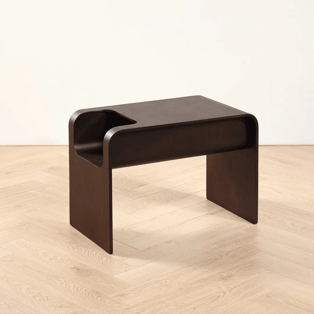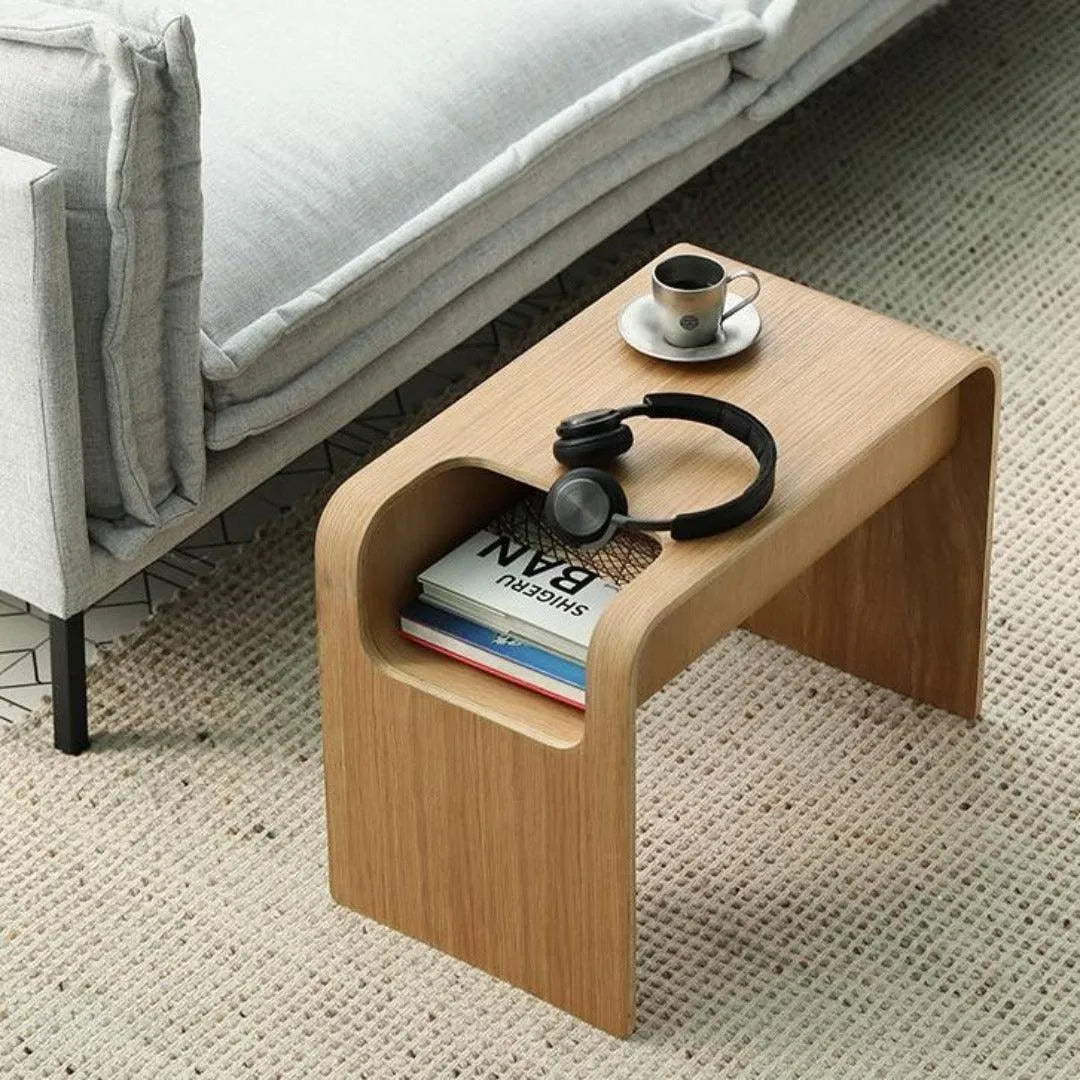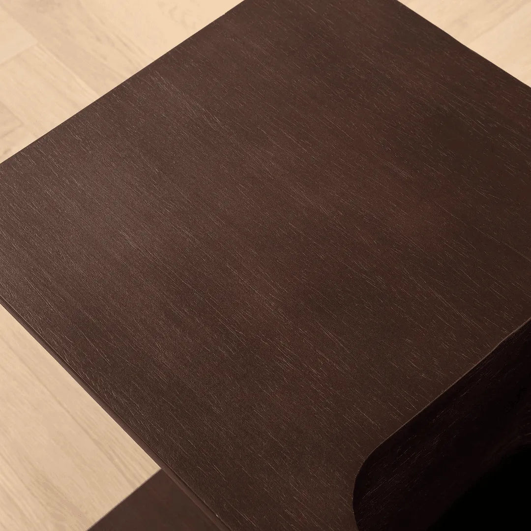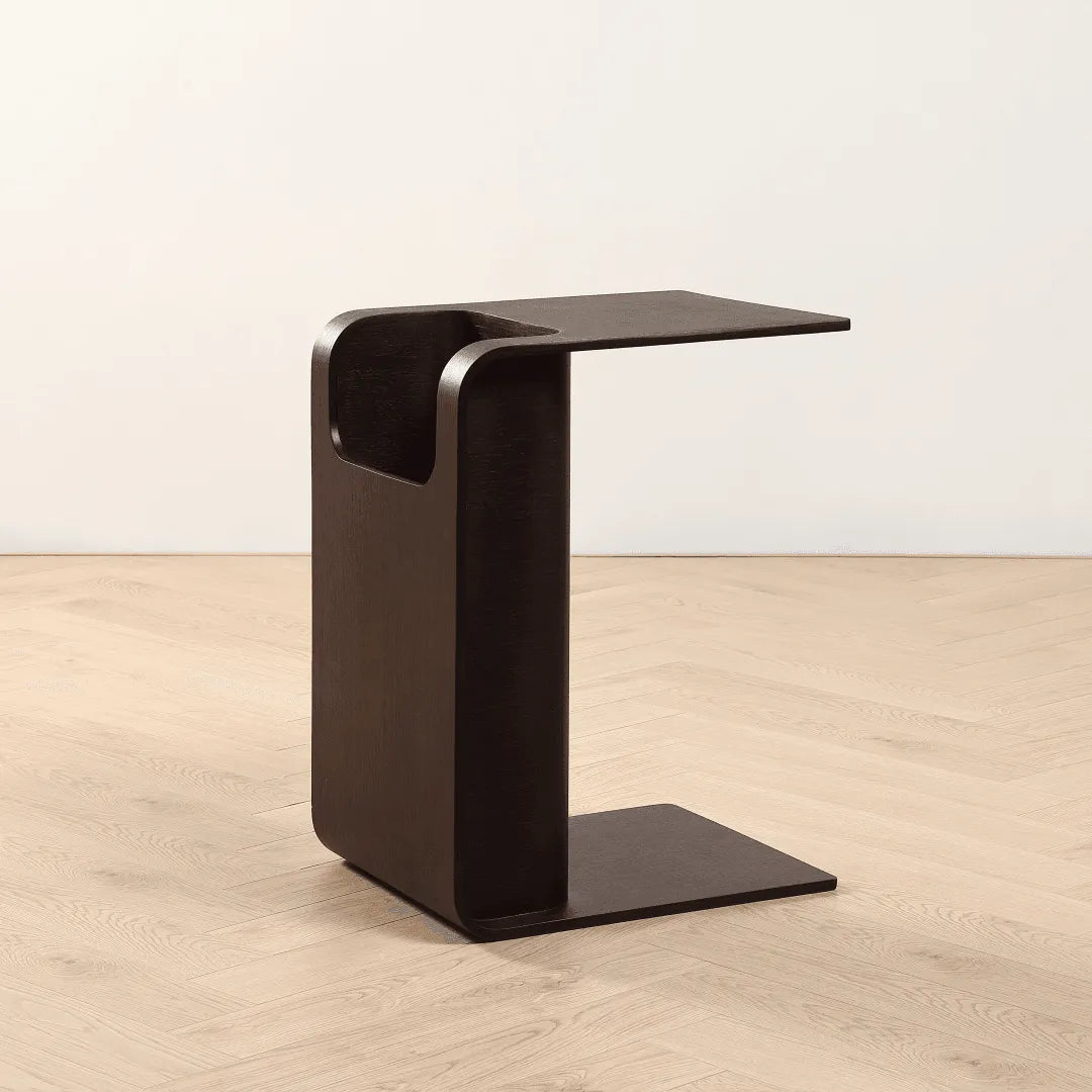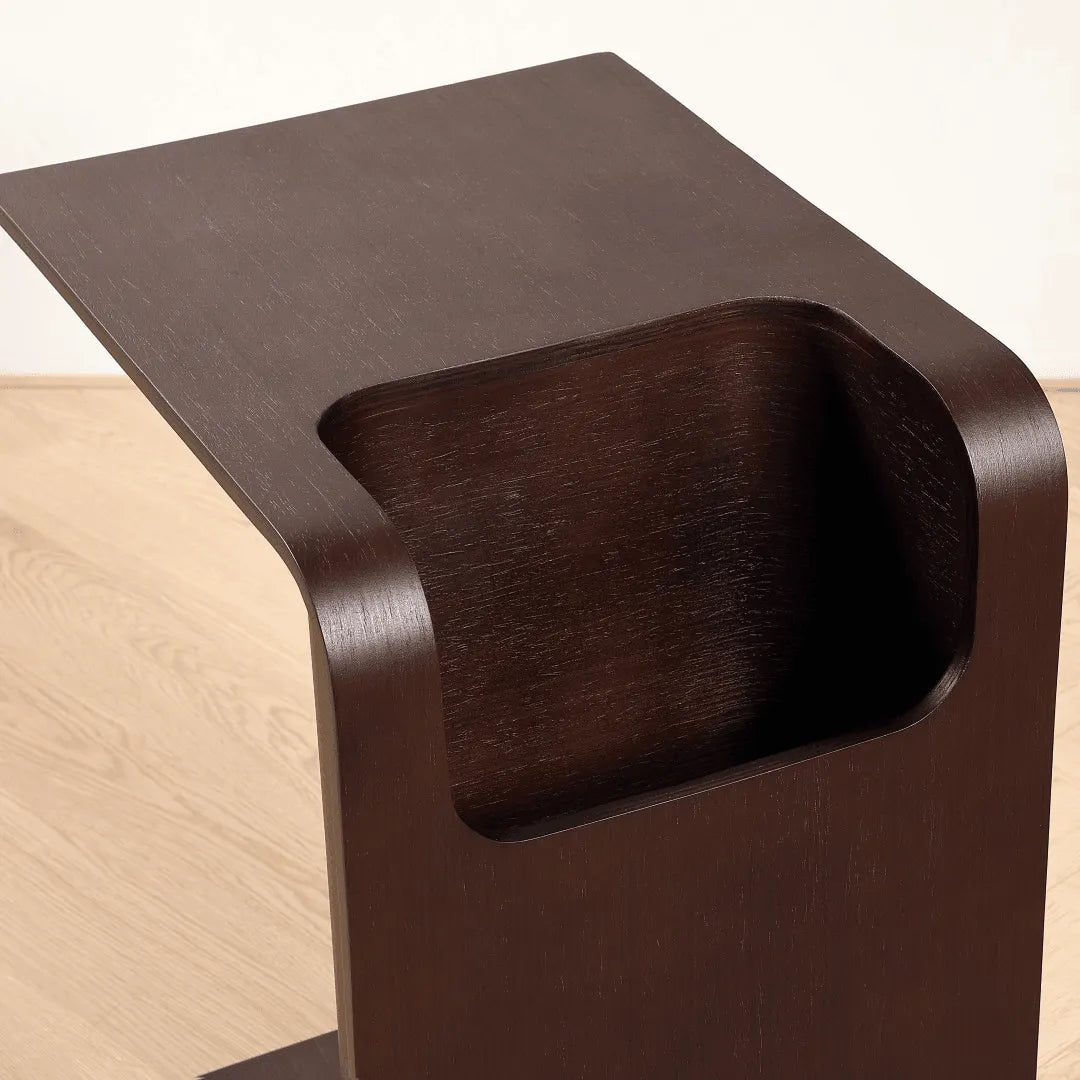 Arriving fully assembled, this end table is handcrafted from engineered wood and brings the latest innovative modern design into your home. Sharp sleek angles combined with a natural wood grain finish make this table a standout anywhere you choose to place it. The deep coloring in the finish allows you to see every natural variation in the wood, while the complex design celebrates the hand-crafted artisan look of the piece. Product In Real Life