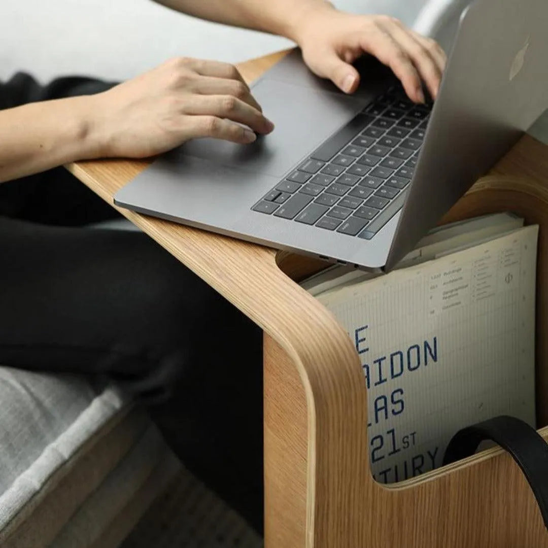 Can be used vertically as a side table, or horizontally placed to be a lap desk or ottoman. With embedded storage, all document or remote control is placed within reach of the arm.