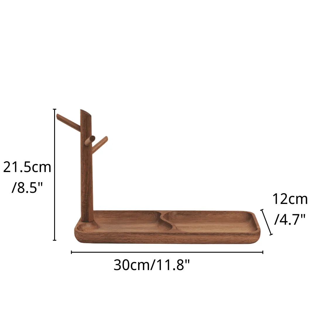 The vertical section is designed like a branch, providing a handy spot to hang small items such as keys, necklaces, and watches for easy access.