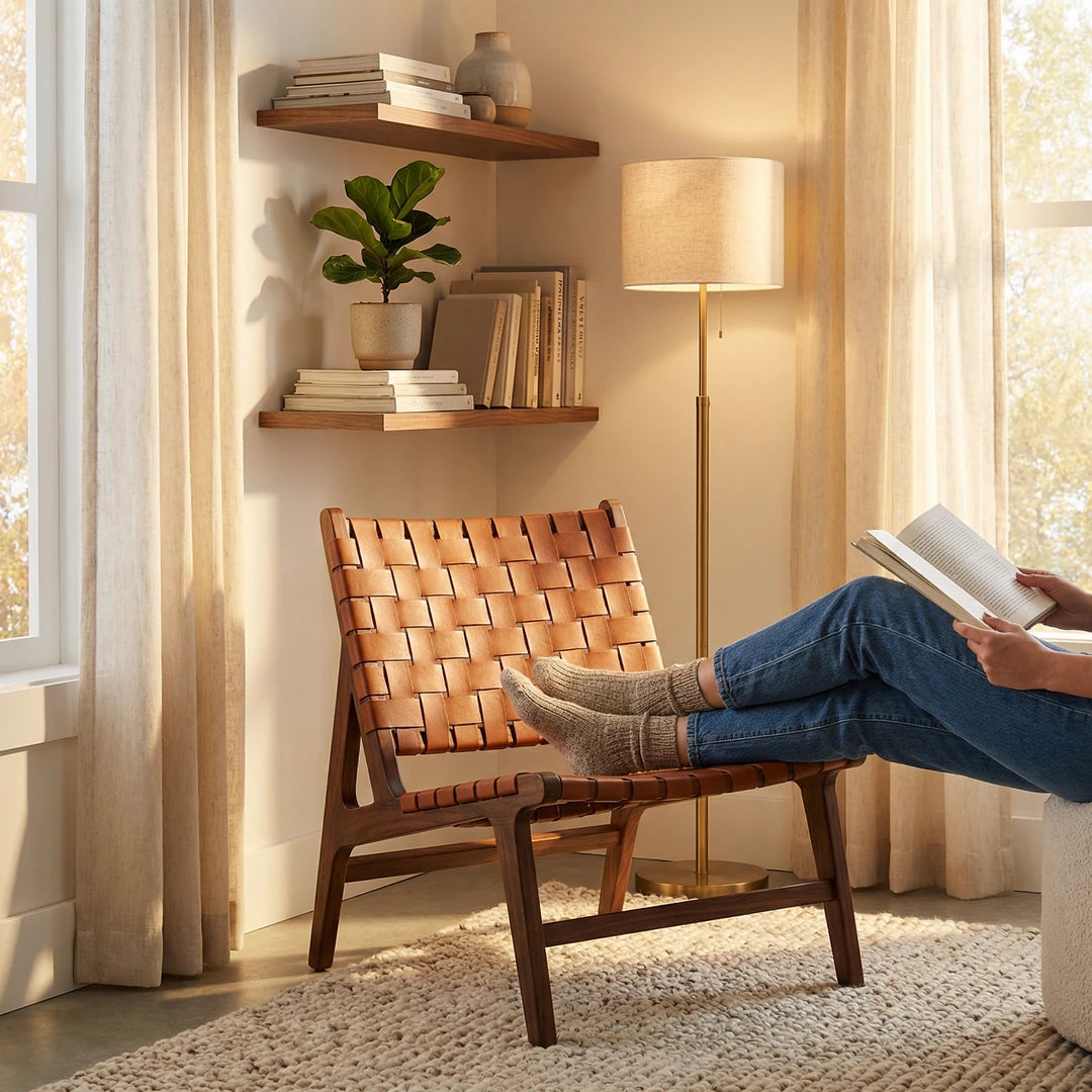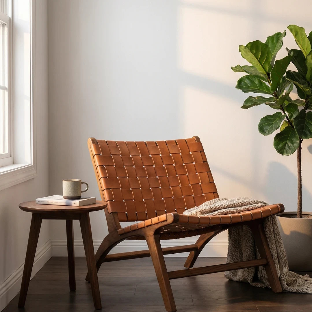 Sometimes a seating arrangement isn’t complete without an accent chair or two to round it out. Plus they’re an extra seat for when that extra guest comes over. Perfectly at home in a traditional aesthetic. This chair is constructed with teakwood, using genuine Indonesia cowhide. It's light weight, comfortable, and good for both indoor and outdoor use.