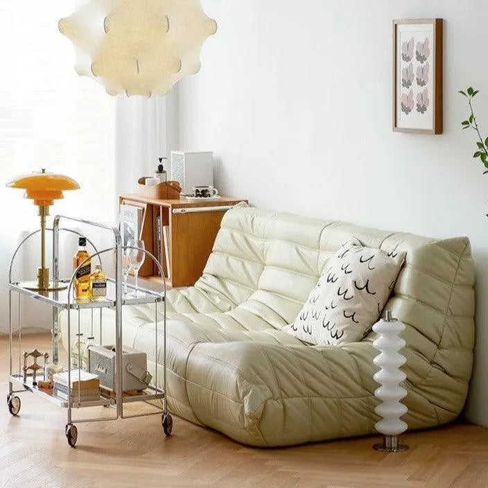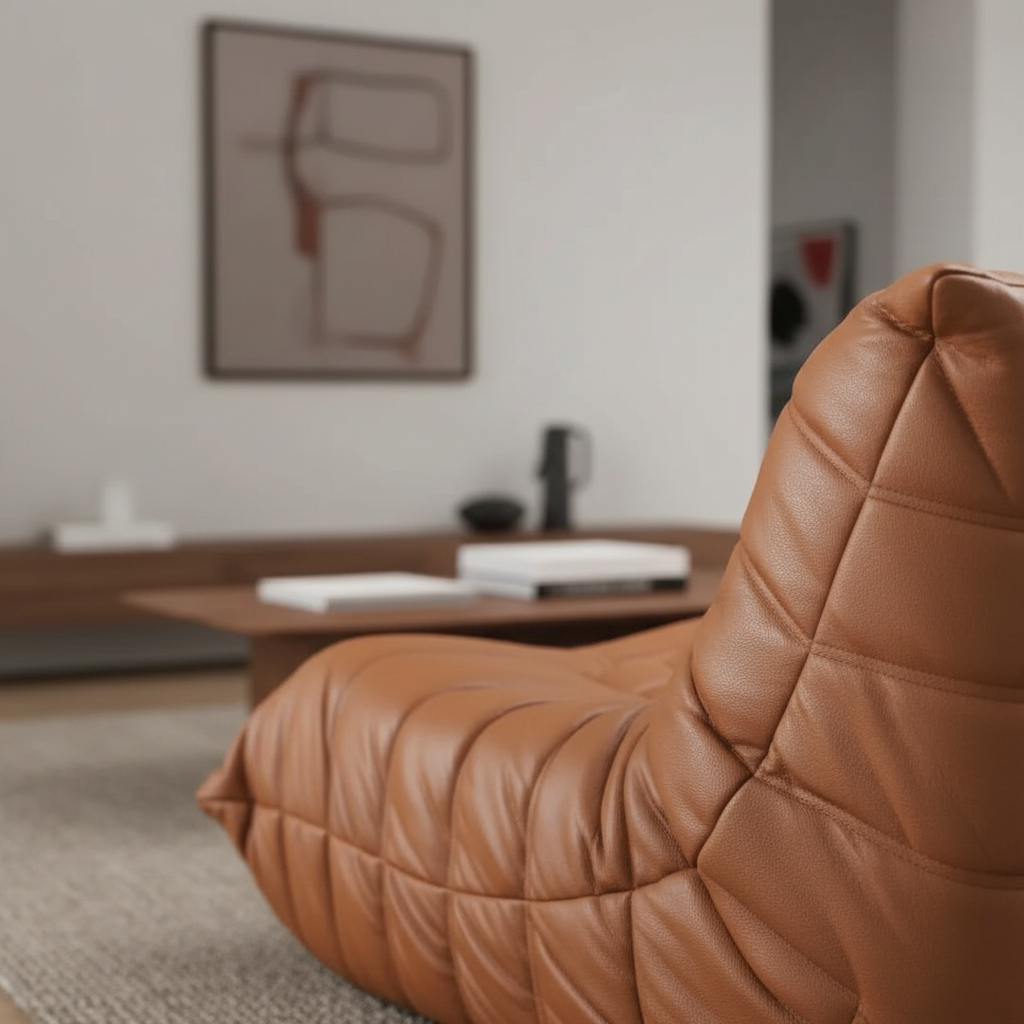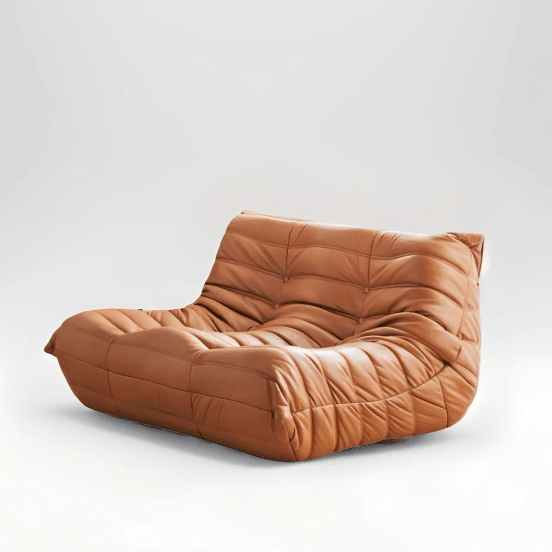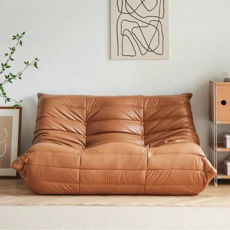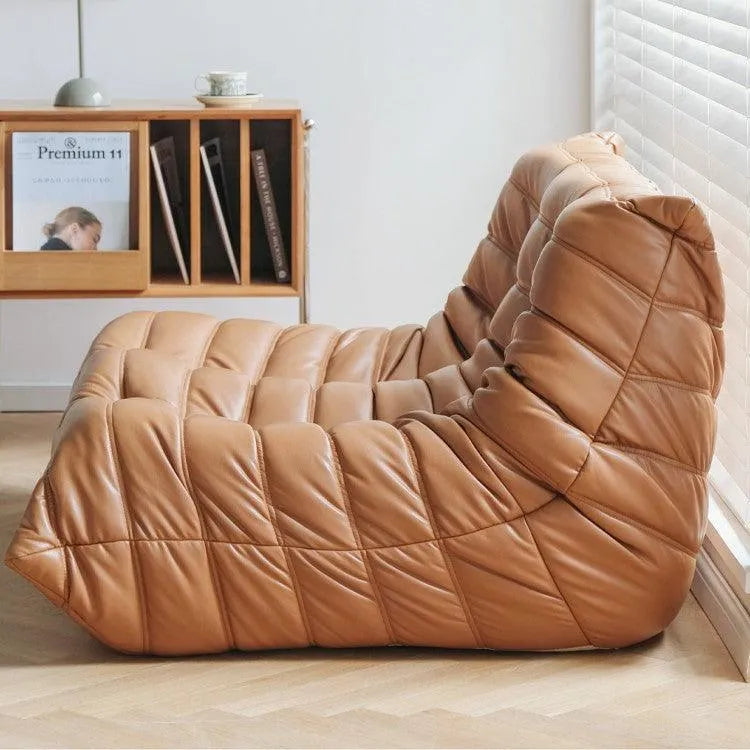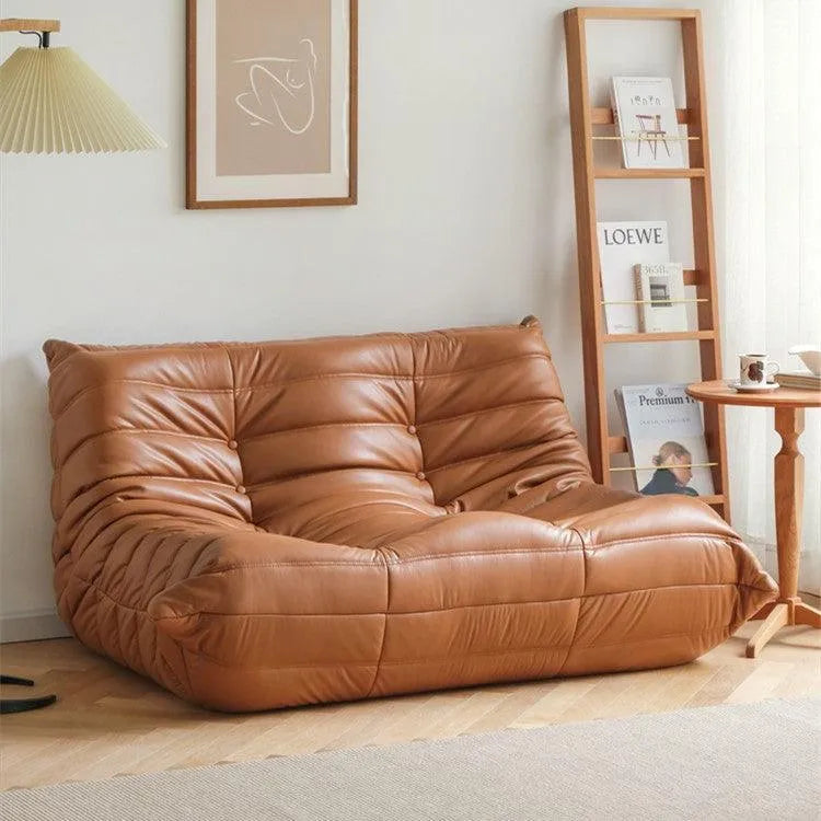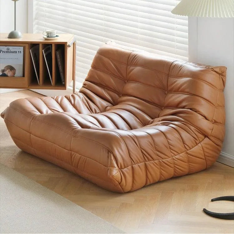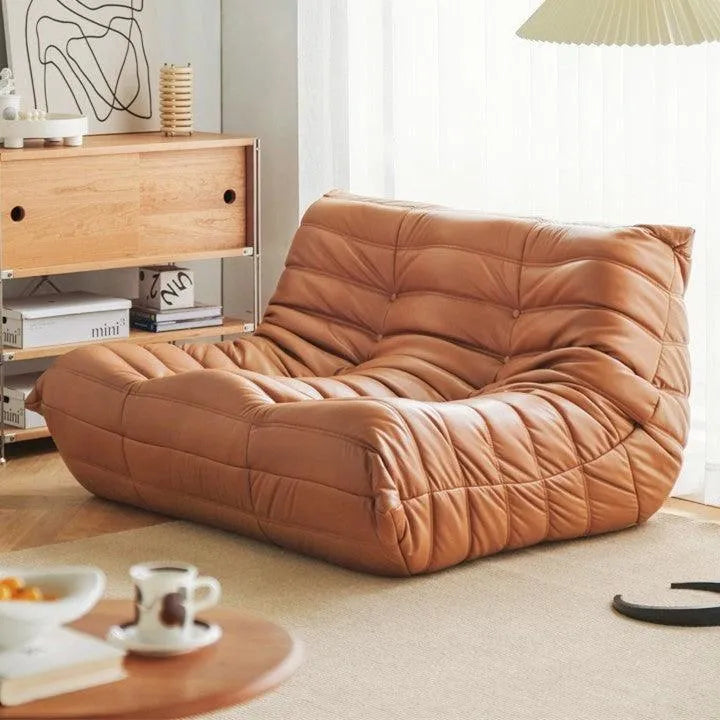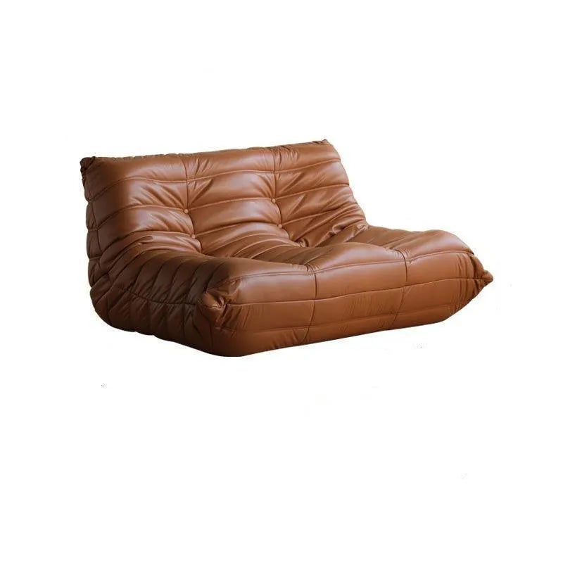 The multifunctional lazy sofa has become the trend of people's leisure and entertainment after getting off work every day. This genuine leather sofa is one of the most popular types. Living room, bedroom, home office, dorm room, balcony, and outdoors, it can be used almost anywhere for watching TV, playing games, using a laptop, or sleeping. The loveseat has a bucket seat that wraps your hips nicely and provides excellent comfort. Made of high-resilience foam wrapping fabric, it will not deform even after prolonged use. It's a replica of the Togo chair.